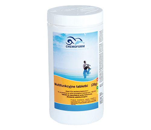 Stały preparat chlorowy w formie tabletek (20g). Zawiera ok. 90% aktywnego chloru, koagulant, stabilizator pH, środek glonobójczy.