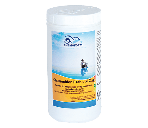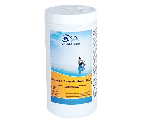 Stały preparat chlorowy w formie tabletek (20g) służy do szybkiej dezynfekcji wody basenowej. Ok 56 % chloru.