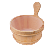 Ceber o pojemności 4l ułatwia dozowanie wody w saunie. Wykonany z jasnego drewna z wymiennym wkładem plastikowym.
