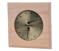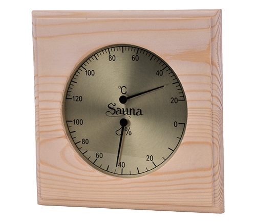 Dwufunkcyjne urządzenie w drewnianej obudowie mierzące dwa podstawowe parametry w saunie, tj. temperaturę i wilgotność. Higrotermometr należy zawiesić na ścianie w kabinie sauny.