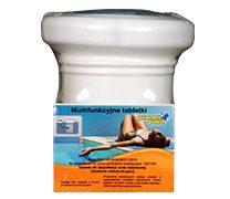 Środek do pielęgnacji wody basenowej o działaniu wielofunkcyjnym. Zawiera środek flokujący, glonobójczy i środek dezynfekcyjny – w jednorazowej boi dozującej.