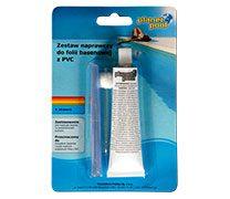 Składa się z tubki kleju, który spaja nawet pod wodą i łaty. Umożliwia szybkie załatanie dziurawej folii w basenie.